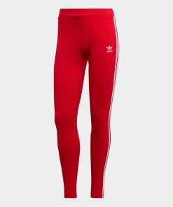 Elongate your look of the day with adidas Adicolor Classics 3-Stripes Leggings. The red adidas leggings are built with soft cotton jersey that supports the Better Cotton Initiative. The white 3-Stripes add a pop to your look that extends from the top of your hips to the bottoms of your ankles. Comes in a flattering high rise. The iconic adidas Trefoil sits on the left hip. Comes in Vivid Red with white adidas details.