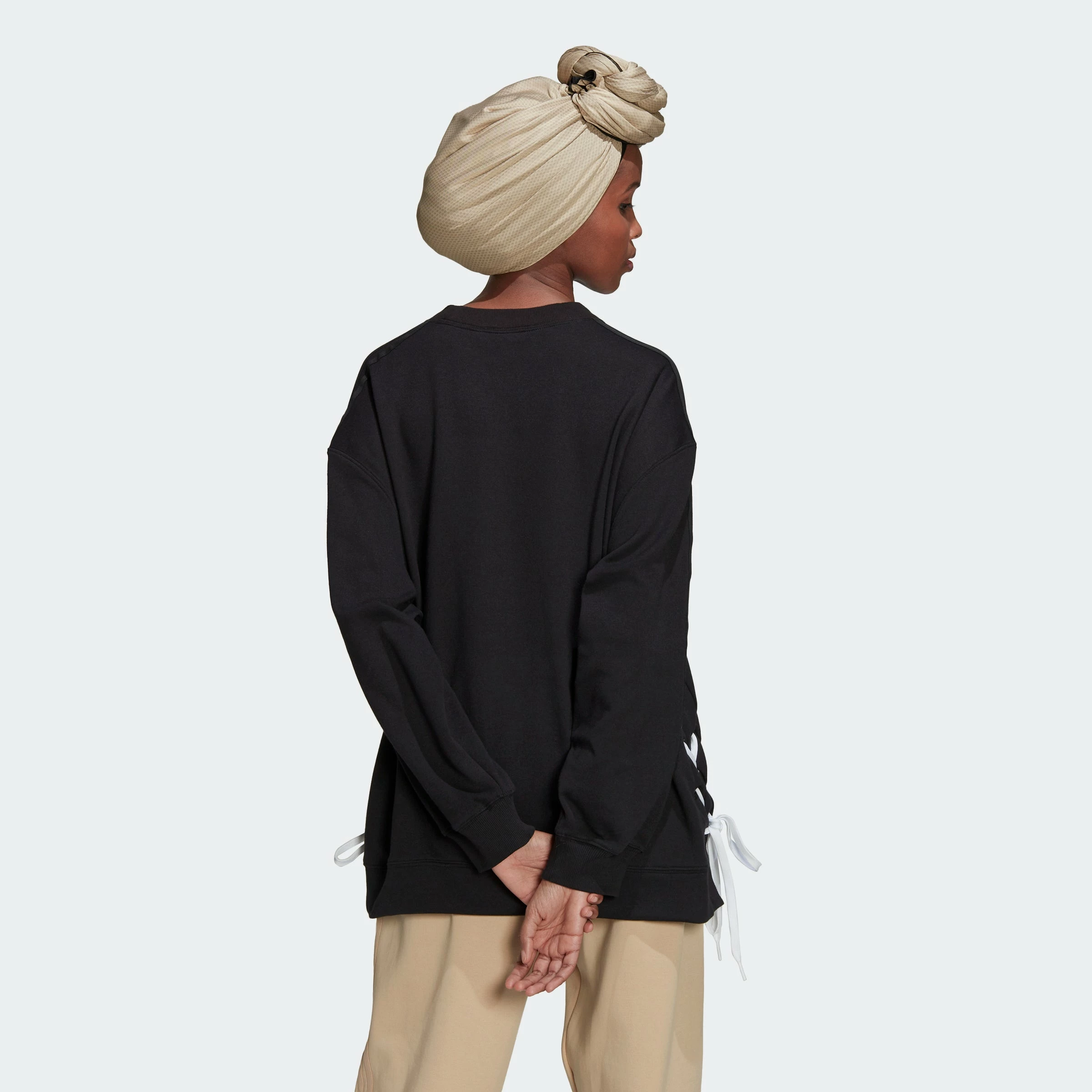 Lace it up as you please. The adidas Always Original Laced Crew Sweatshirt is made to move your way, with a loose, comfortable, soft doubleknit fabric. Loosen the laces and reveal some skin, or perhaps a different layer underneath. Go the opposite route and cinch them tight, letting the laces hang long down the sides. Choose to go cozy and stylish with adidas.