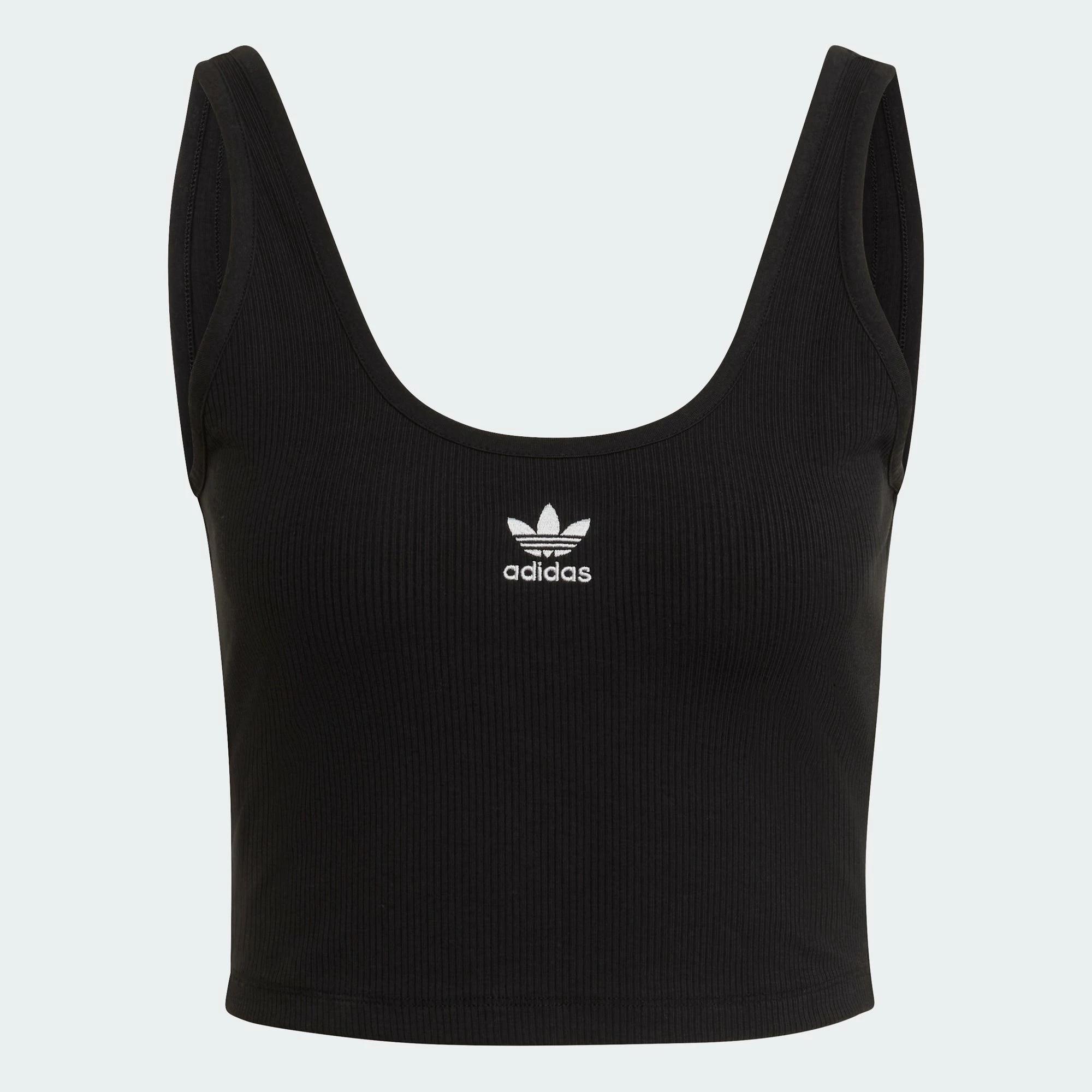 Cropped to perfection, the adidas Essentials Rib Tank Top looks perfect on its own or used as a layering piece. The ribbed tank top features the adidas logo along the neckline with a deep round dip in back.
