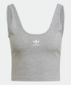 Cropped to perfection, the adidas Essentials Rib Tank Top looks perfect on its own or used as a layering piece. The ribbed tank top features the adidas logo along the neckline with a deep round dip in back.