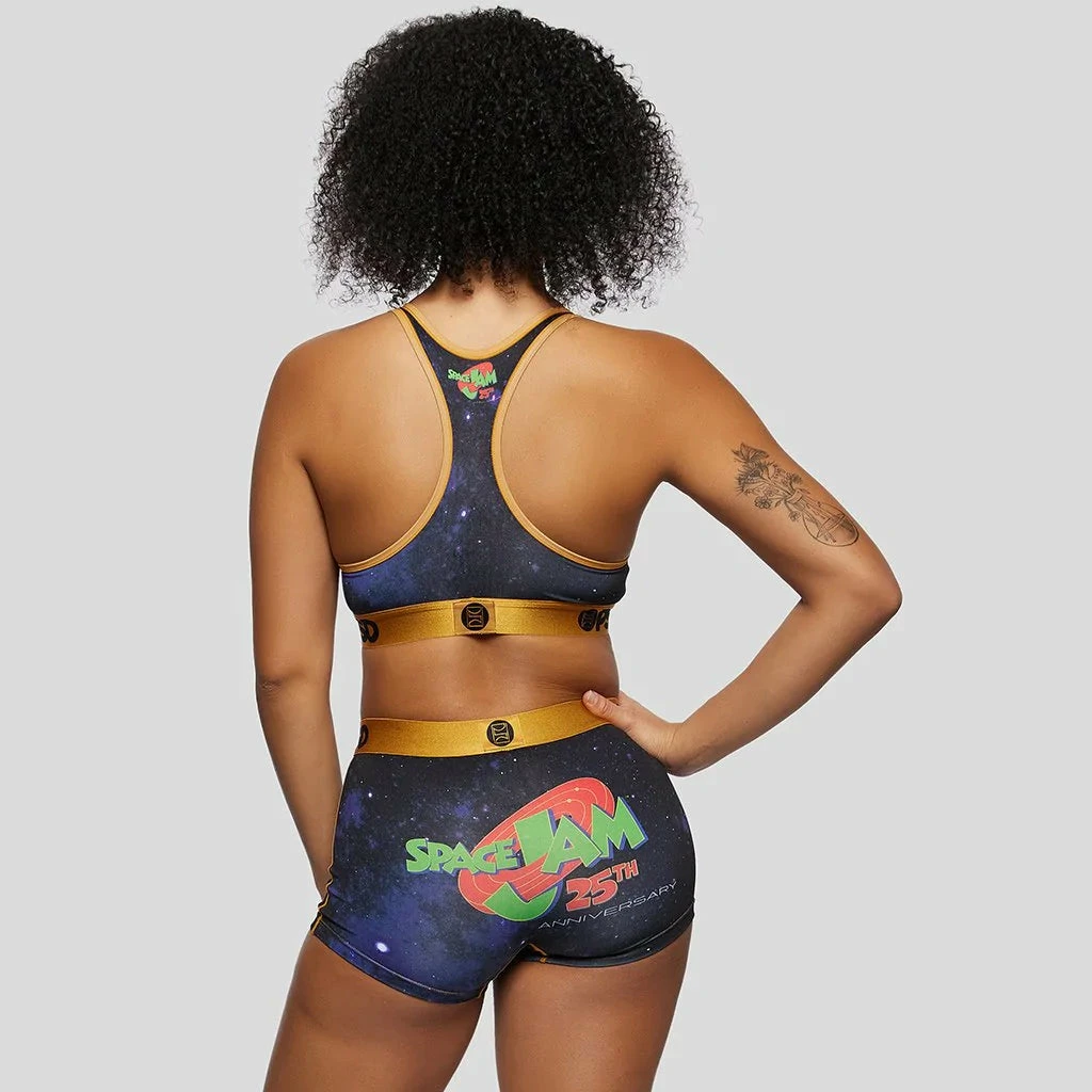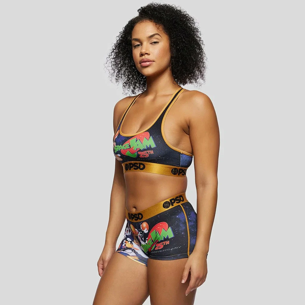 It’s the 25th anniversary of Space Jam! Add a playful look with PSD. The PSD Space Jam: A New Legacy – 25th Anniversary Sports Bra is made of 4-way stretch mesh fabric that’s ultralight, super soft and super comfy. You’ll stay cool and fresh all day long. The soft and flexible microfiber waistband is made with moisture-wicking properties and contours your waistline. Whether you live a physically active lifestyle, or are just chill and like to lounge, do it in style from the inside out.